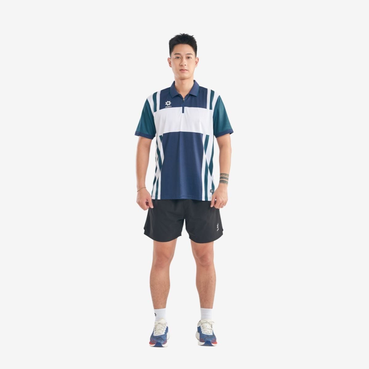 Cổ áo với khóa kéo ngắn tiếp tục tôn lên tinh thần hoài cổ – một đặc trưng quen thuộc của phong cách thể thao retro những năm 70, thay cho hàng khuy dài thông thường. Chi tiết này vừa thời trang vừa giúp điều chỉnh độ mở cổ linh hoạt.
